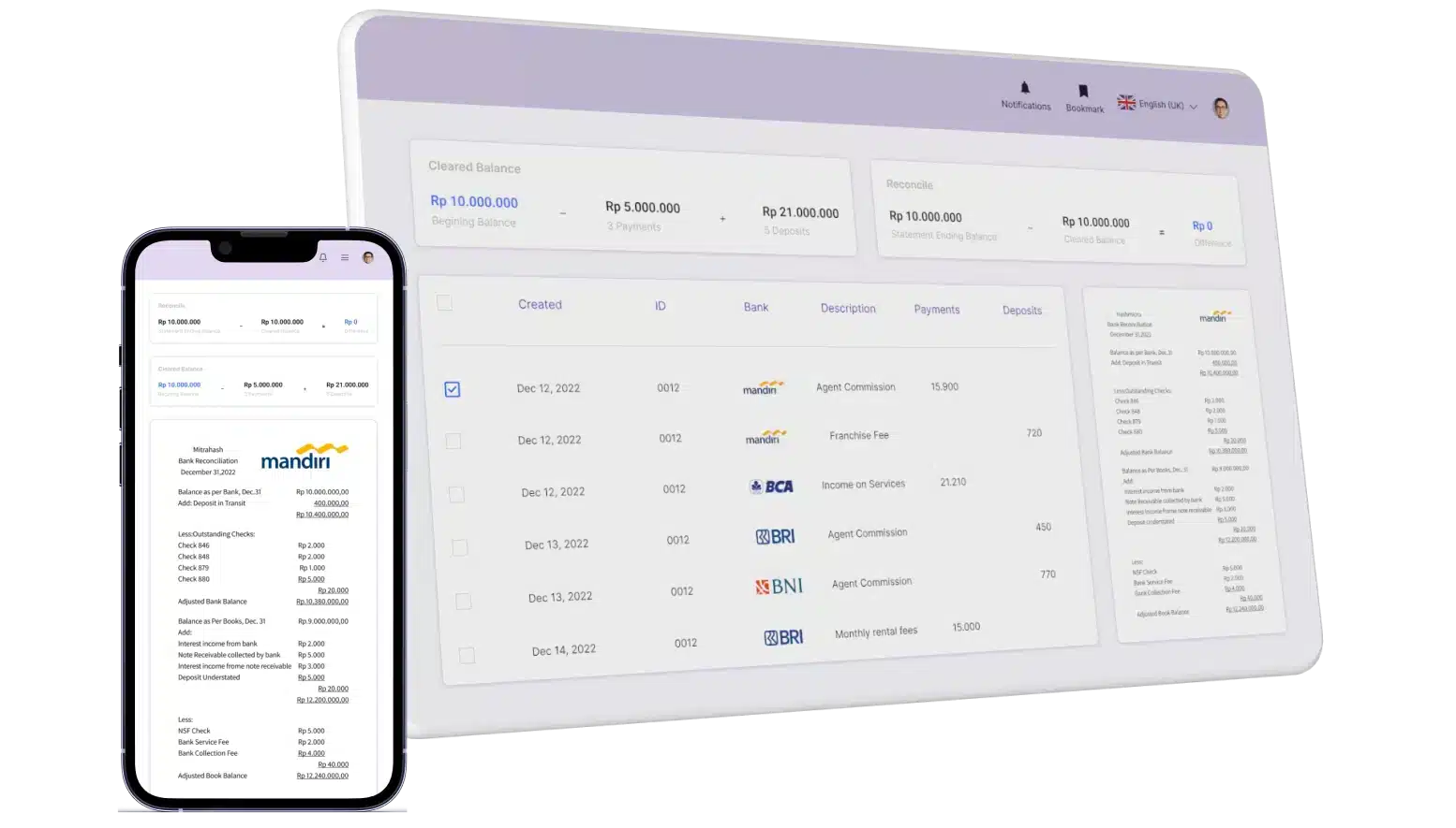 - Bank integration – auto reconciliation: Fitur ini secara otomatis mengimpor transaksi dari akun bank dan mencocokkannya dengan catatan akuntansi, menghemat waktu dan mengurangi kesalahan manusia.