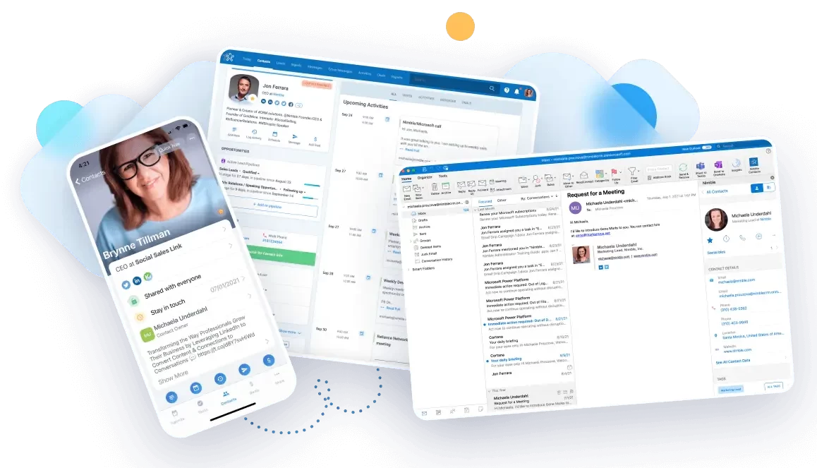 Nimble adalah menawarkan aplikasi transaksi penjualan yang mengintegrasikan berbagai alat dalam satu sistem intuitif. Sistem ini menyatukan dan menghubungkan email dan kalender dari Google serta Outlook dengan platform ini. Nimble CRM unggul dengan kemampuan manajemen kontak yang terintegrasi secara cerdas.