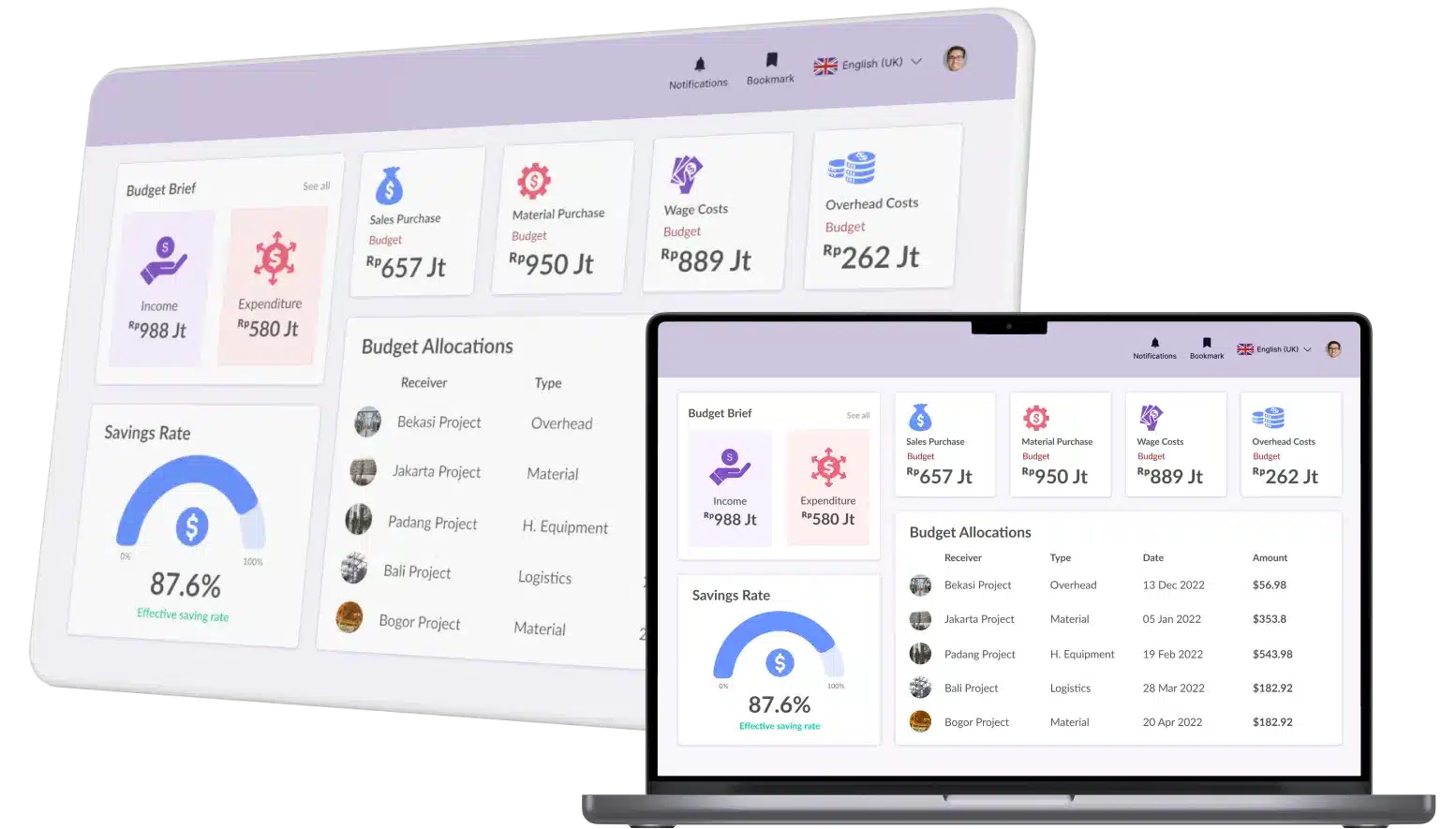 - Monitoring Proyek: Kelola seluruh aspek esensial proyek mulai dari budget planning, project management, scheduling, hingga eksekusi dalam 1 sistem terintegrasi.