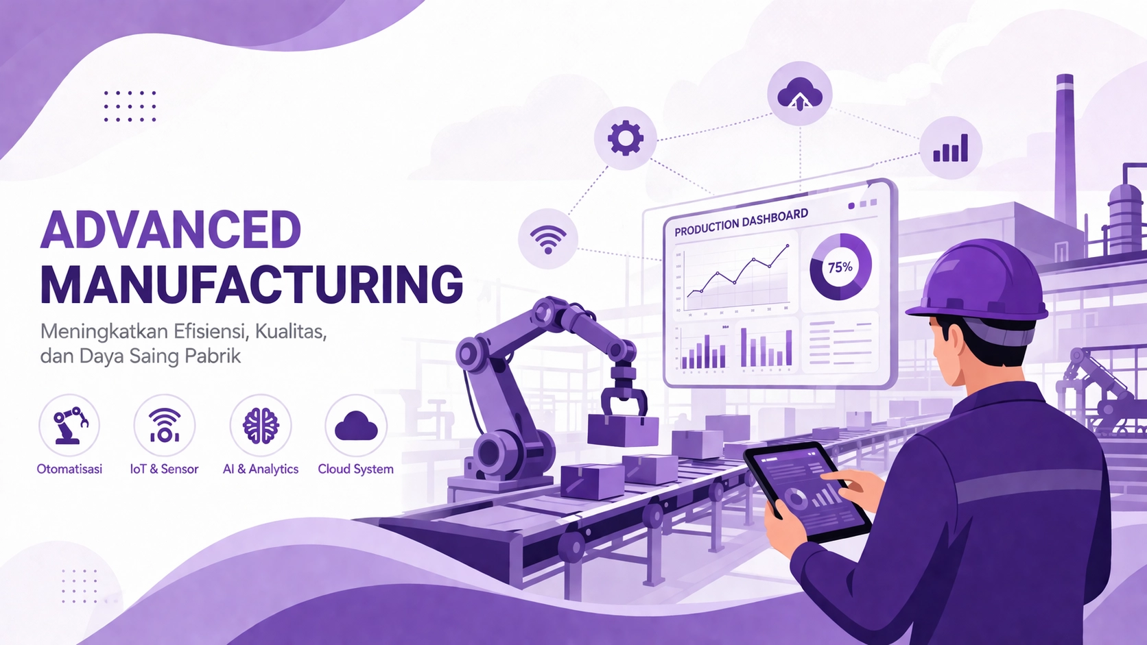 Pabrik sering terhambat oleh data terpisah, pencatatan manual, downtime mesin, waste material, dan kualitas produk yang belum stabil.